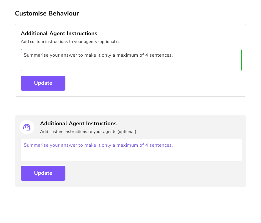 Say goodbye to drag and drop editors, transform your agent’s behavior with text prompts.