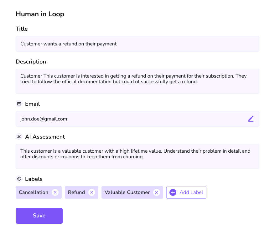 Enable agents to gather escalations and leads by generating precise, pre-filled tickets for you.